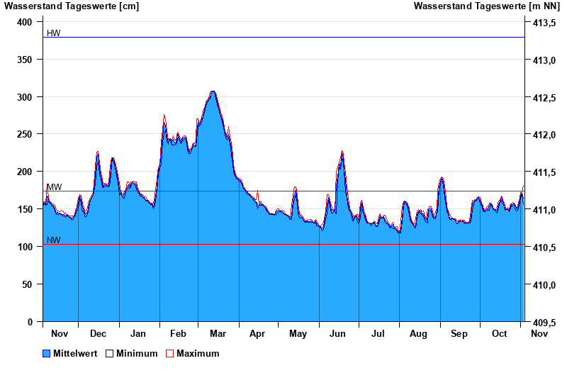 | Date | Mean value [cm] | Maximum [cm] | Minimum [cm] |