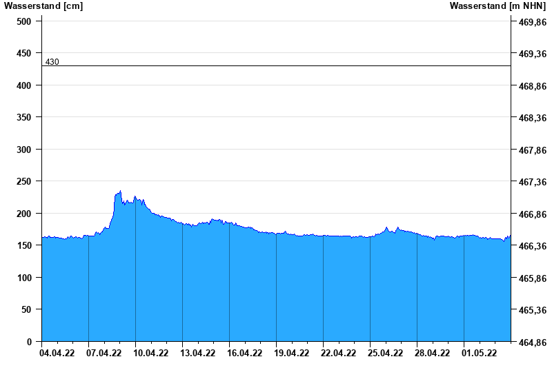 - 430 cm: Neu Ulm: Beginn der Überflutung der Koppenwörth.