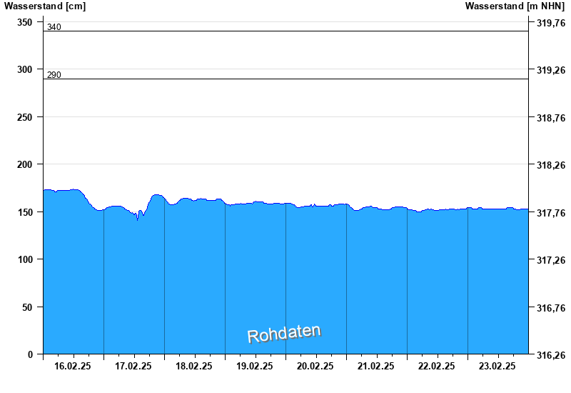 - 290 cm: Plattling: Überflutung der Vorländer beginnt