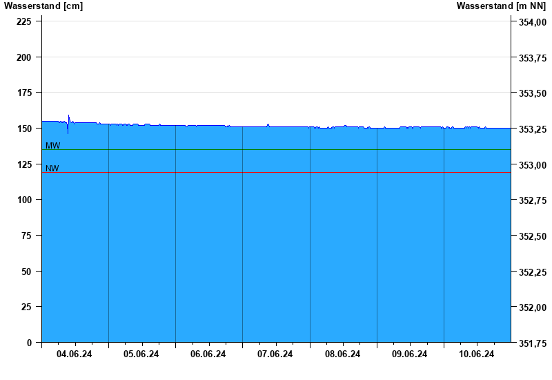 Abfluss durch starke Verkrautung behindert; Abflusswerte unsicher