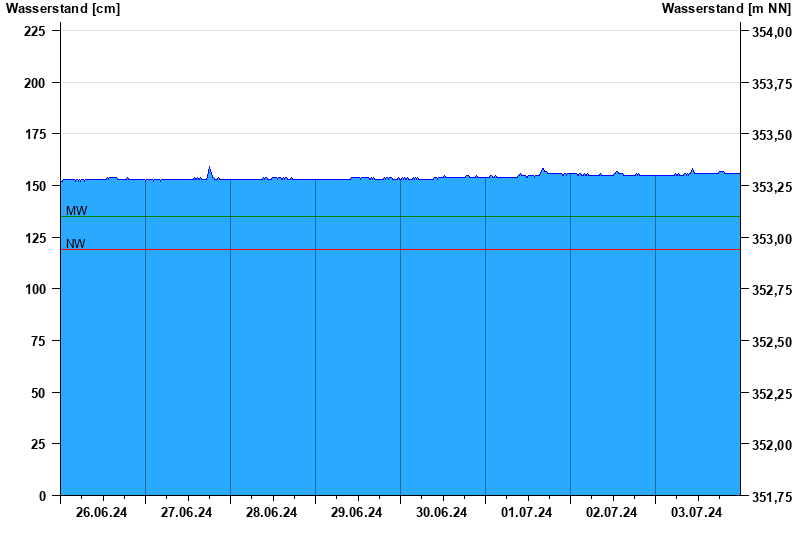 Abfluss durch starke Verkrautung behindert; Abflusswerte unsicher