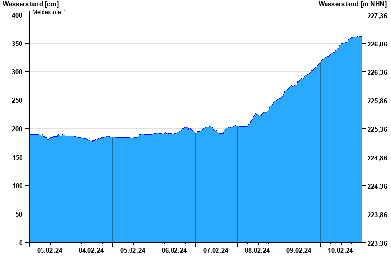 Ausgabe von Abflusswerten wegen Stauregelung erst ab W = 160 cm