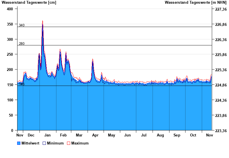 - 340 cm: Trunstadt: Höchster Schiffahrtswasserstand II