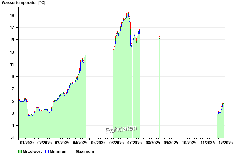| Date | Water temperature [°C] | Maximum [°C] | Minimum [°C] |