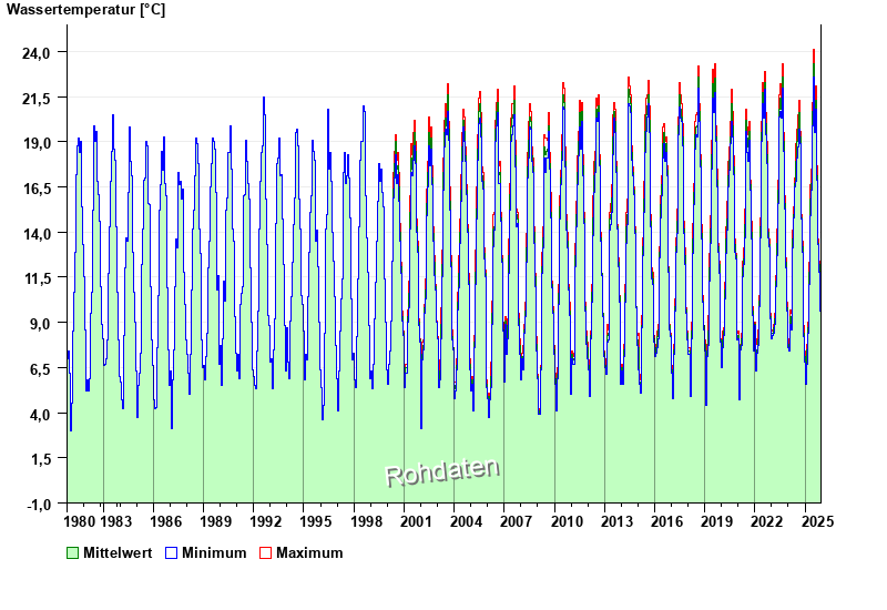 | Date | Water temperature [°C] | Maximum [°C] | Minimum [°C] |