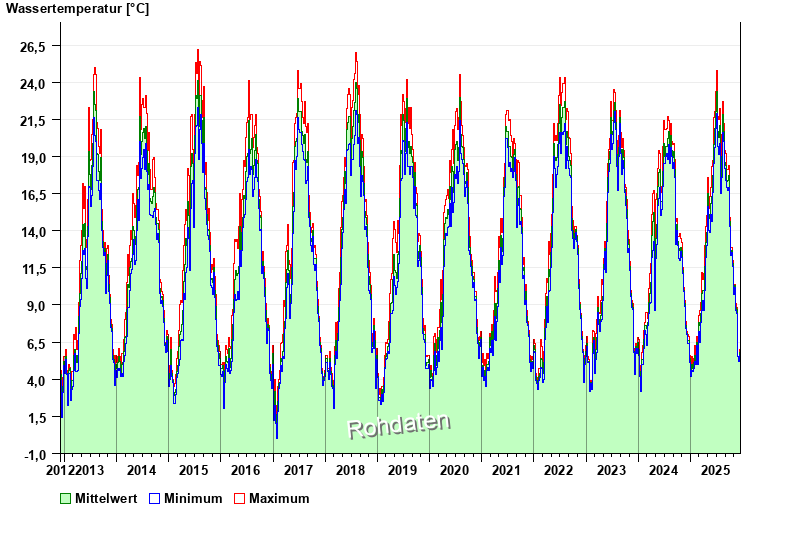 | Date | Water temperature [°C] | Maximum [°C] | Minimum [°C] |