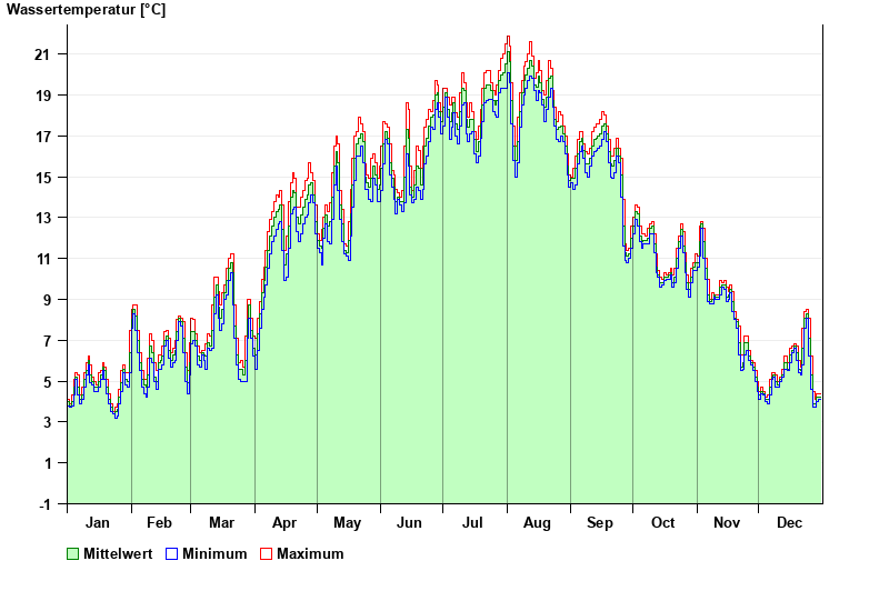 | Date | Water temperature [°C] | Maximum [°C] | Minimum [°C] |