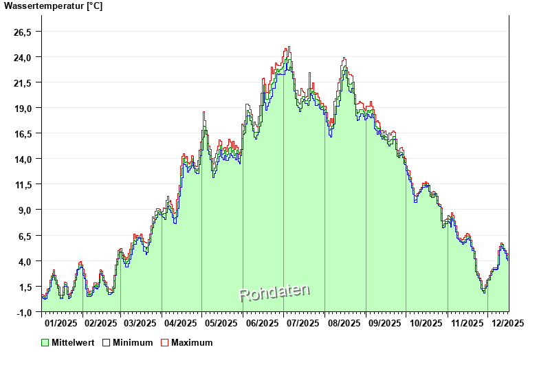 | Date | Water temperature [°C] | Maximum [°C] | Minimum [°C] |