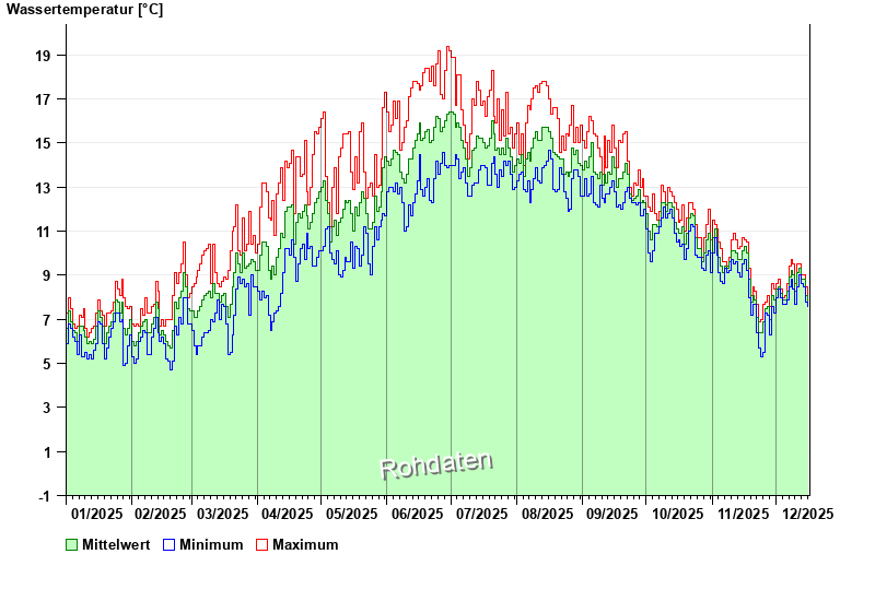 | Date | Water temperature [°C] | Maximum [°C] | Minimum [°C] |